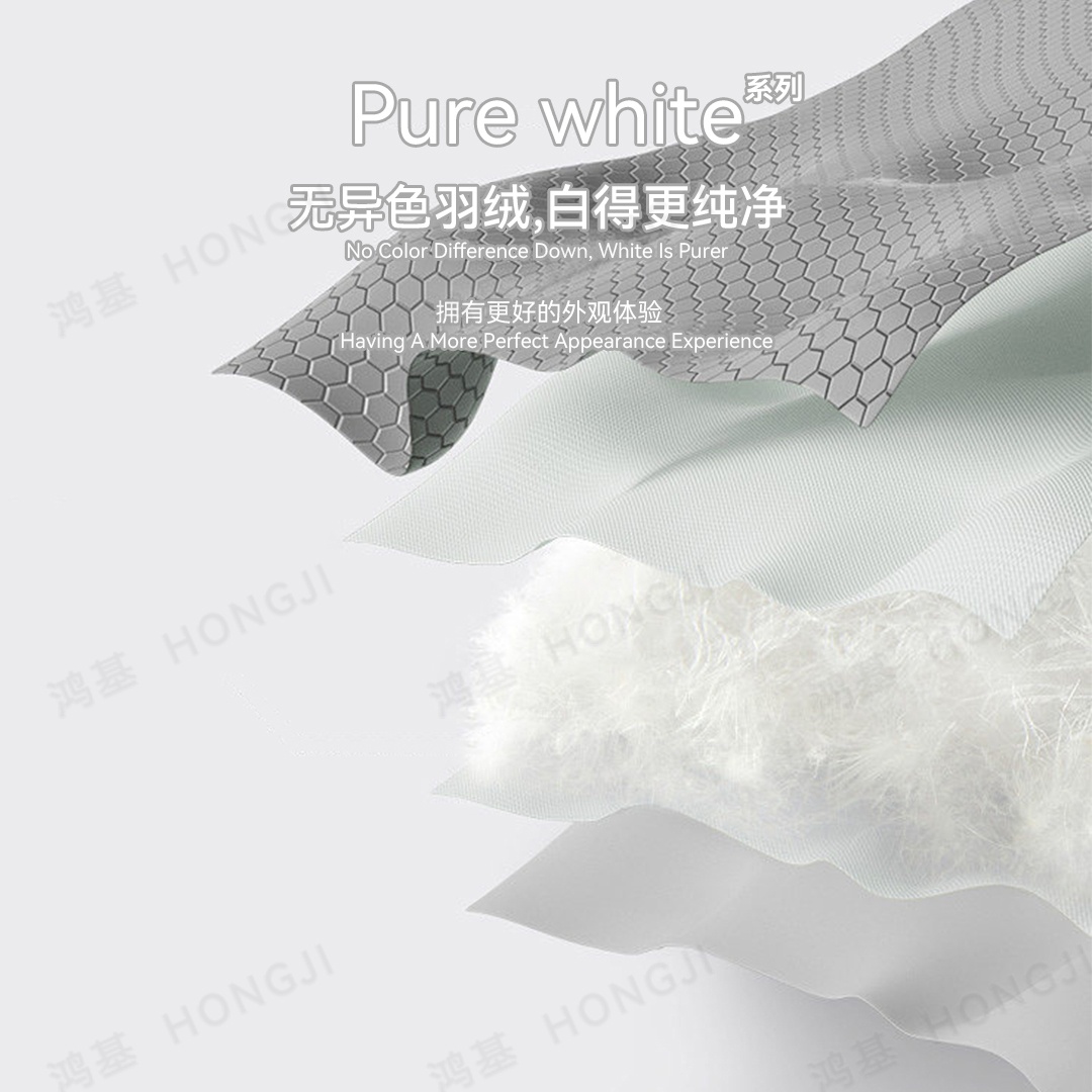 广东鸿基羽绒制品有限公司(简称“鸿基羽绒”)成立于1996年,位于中国羽绒之乡-广东省湛江市吴川市塘尾羽绒特色产业基地。公司专注于羽绒及羽绒制品的研发、生产及销售,产品涵盖羽绒被、羽绒枕、羽绒睡袋、功能枕头、羽毛及羽绒等多个领域。凭借先进的生产技术与丰富的行业经验,鸿基羽绒致力于为品牌客户提供高品质的羽绒填充方案。